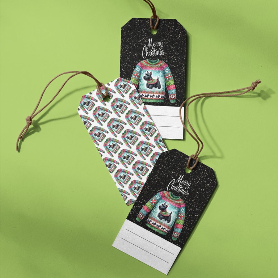Black Scotty Dog Ugly Christmas Sweater Gift Tags